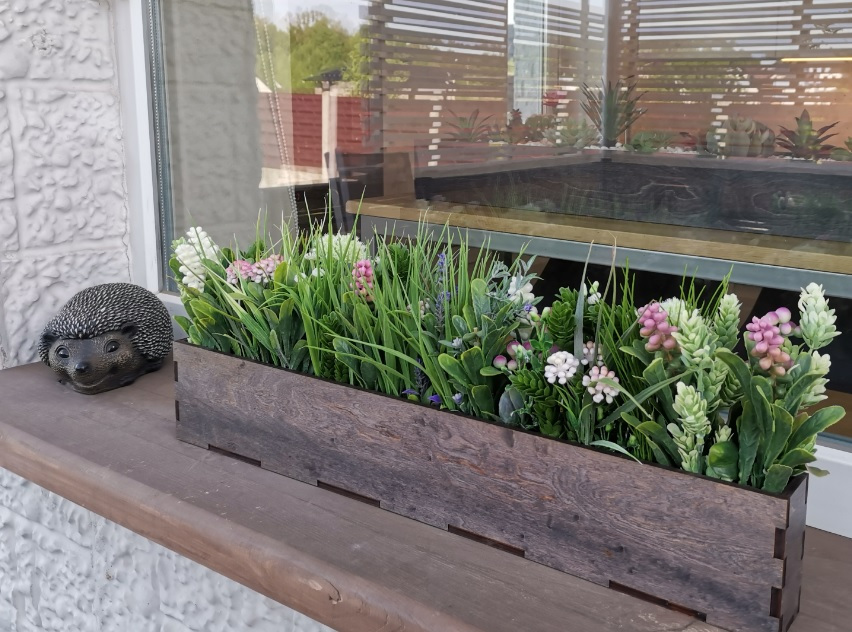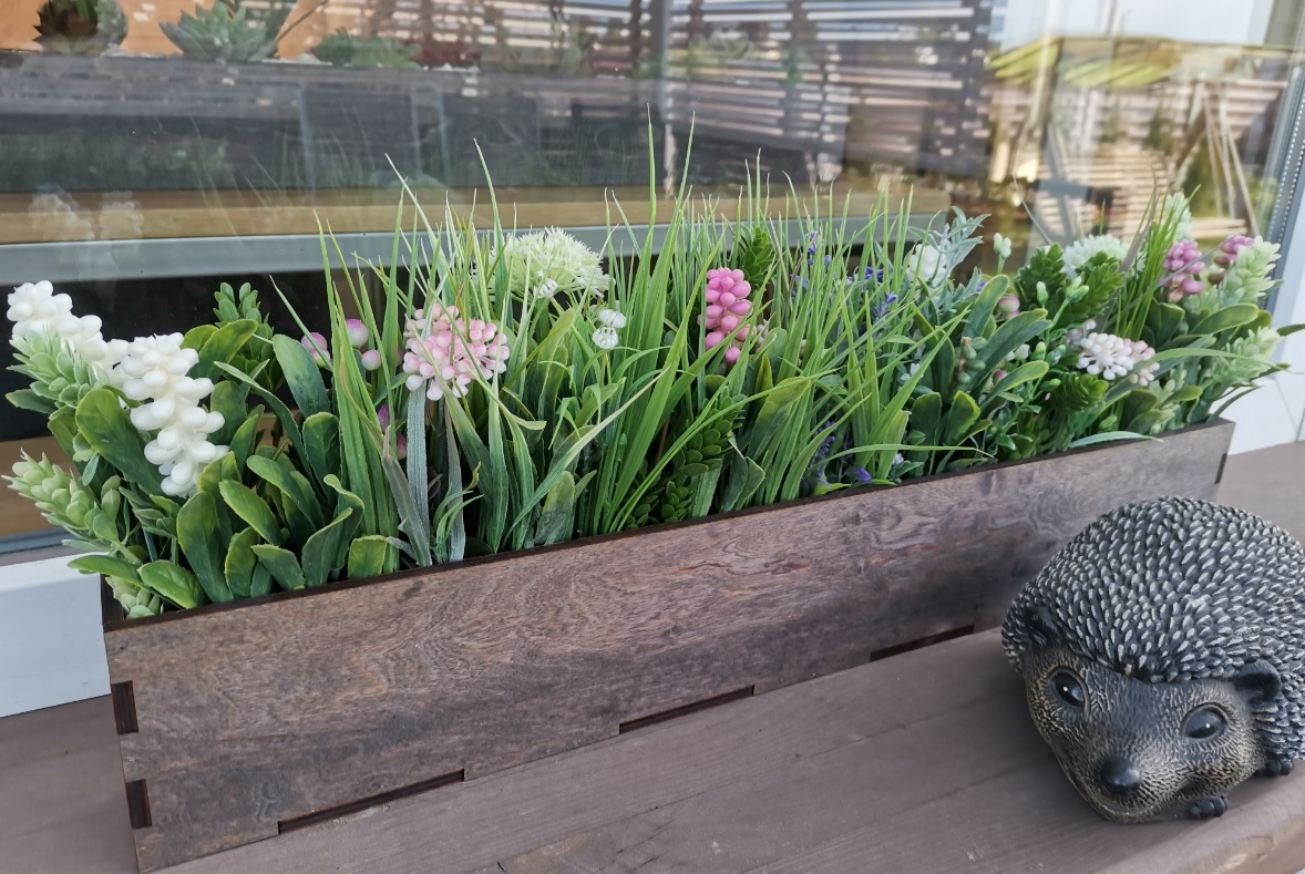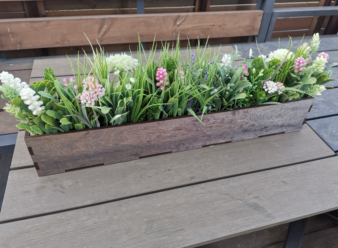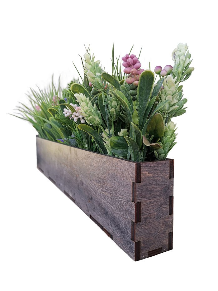 Искусственные цветы в горшке из дерева размером 50*10*5 см для украшения интерьера. Декоративное растение будет радовать глаз и зимой, и летом. Вы можете поставить декоративное растение на подоконник, на полку или даже повесить на стену! А можете использовать как ночник из дерева!