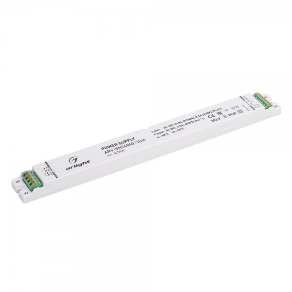 Диммируемый блок питания 24V, ток 2,5А, 60Вт, с корректором мощности, PF>0,9. Управление 0-10V. Сверхтонкий пластиковый корпус IP20. Стоимость указана без учета НДС.