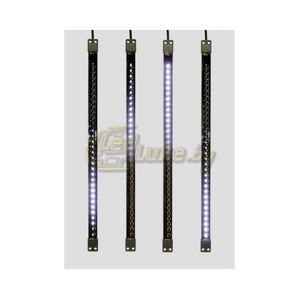 На гирлянде Сосульки 4х14 LED расположены трубки ПВХ длиной 20 см, внутри которых находятся светящиеся диоды (14 шт.). Динамичное свечение диодов создает эффект тающей сосульки. Гирлянда Сосульки используется для оформления витрин, фасадов зданий, деревьев и внутри помещений.