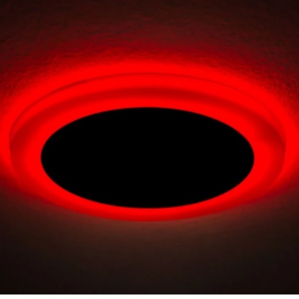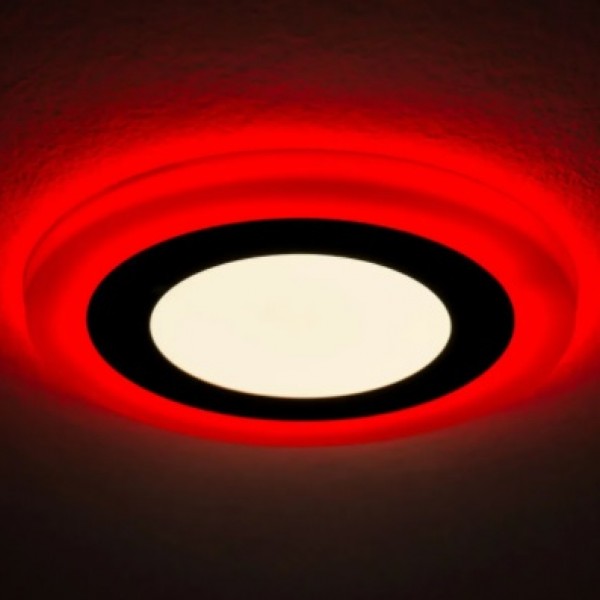 Второй режим - декоративная подсветка, обеспечивается цветным контуром светильника. Позволяет внести новые яркие краски в помещение и сделать интерьер незабываемым.